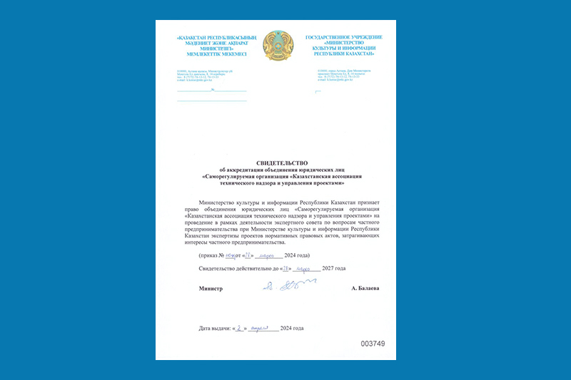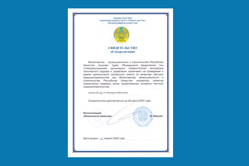 Приказом № 106 от 28 марта 2024 года, Министерство промышленности и строительства Республики Казахстан признает право Объединения юридических лиц «Саморегулируемая организация «Казахстанская ассоциаци...